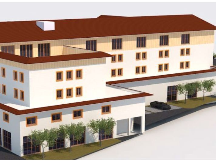 ca. 2.300 m² Verkaufsfläche und einem Hotel mit ca. 136 Appartement