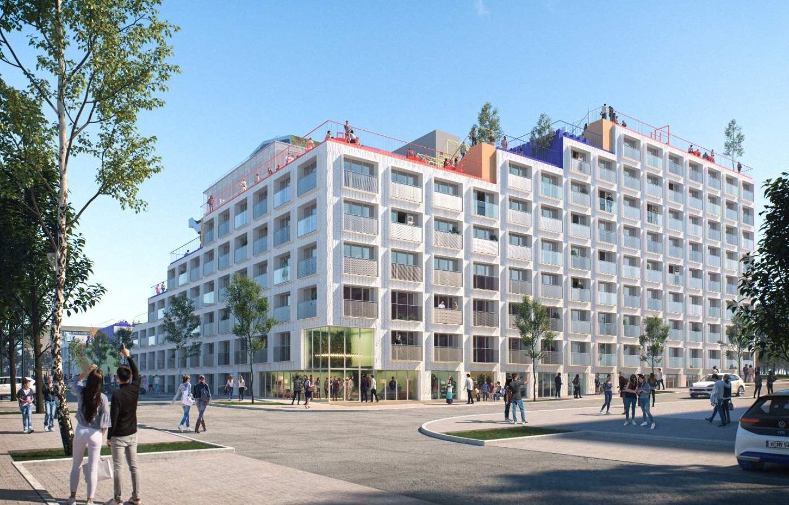 Neubau Studentenwohnungen mit Lounge, Fitnesswelt und Sportplatz auf dem Dach